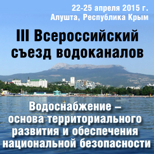 22-25 апреля 2015 года в г. Алушта состоится III Всероссийский съезд водоканалов. Организатор мероприятия Российская ассоциация водоснабжения и водоотведения при поддержке Аналитического центра при Правительстве Российской Федерации и участии федеральных органов власти, экспертного и отраслевого сообщества.
