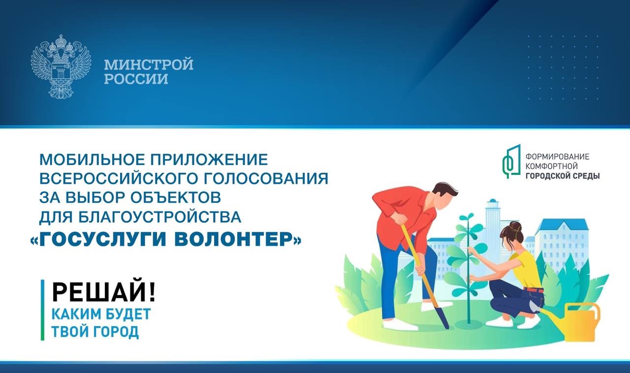 В этом году для большего вовлечения граждан во Всероссийское голосование за объекты благоустройства в регионах РФ в рамках федерального проекта «Формирование комфортной городской среды» волонтеры будут использовать специальное мобильное приложение «Госуслуги Волонтер».